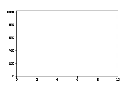 今回のアニメーションではグラフがx軸の0から10の方向にどんどん伸びていくグラフを作成してみます。