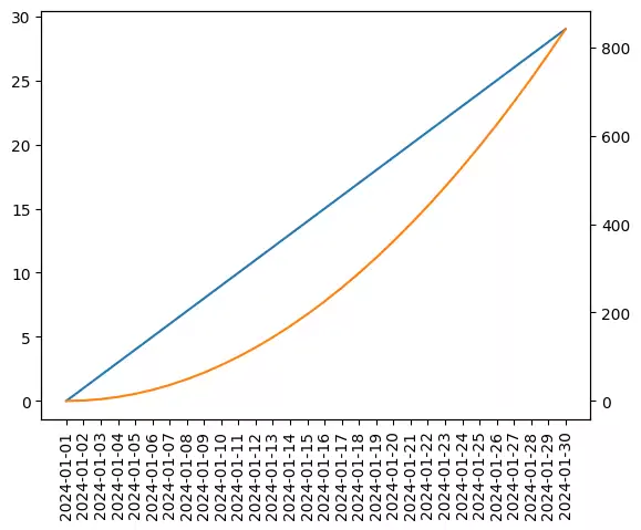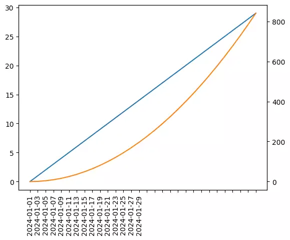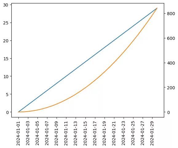 今回はmatplotlibの2軸グラフで表示する軸の値を指定する方法と軸の値を回転させる方法を紹介します。