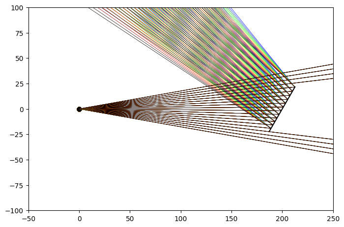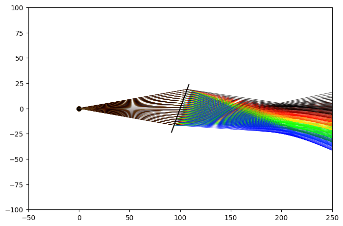 beam = op.elems.DivergingBeam(angle=20, wavelength=np.arange(450, 701, 25), scene=scene)