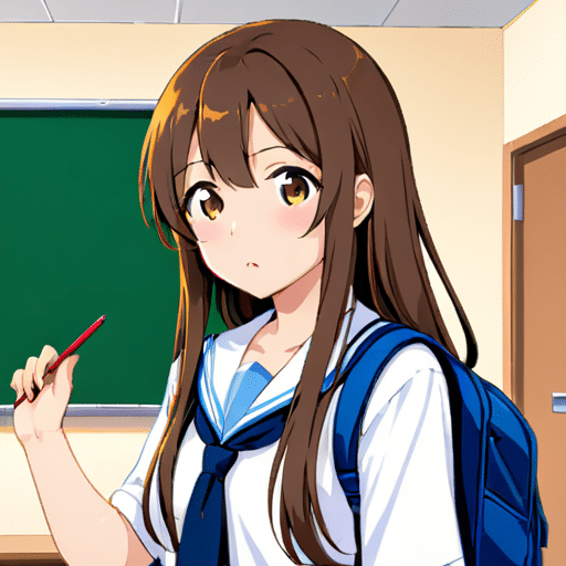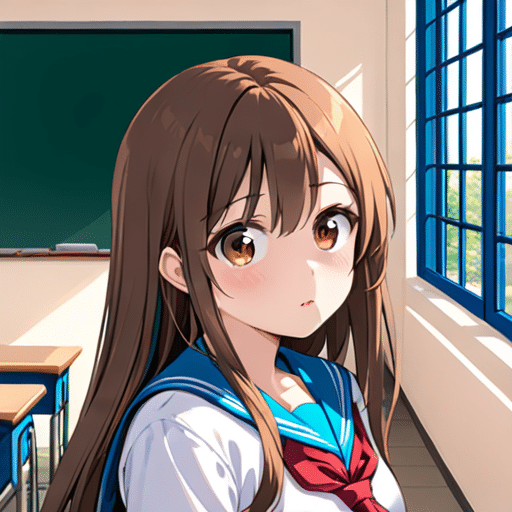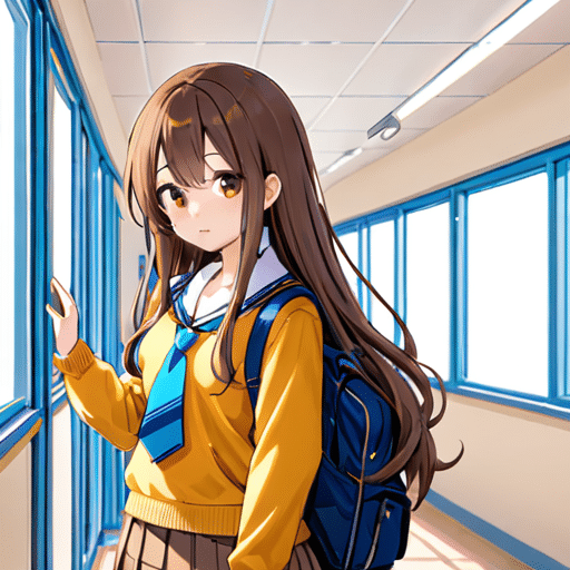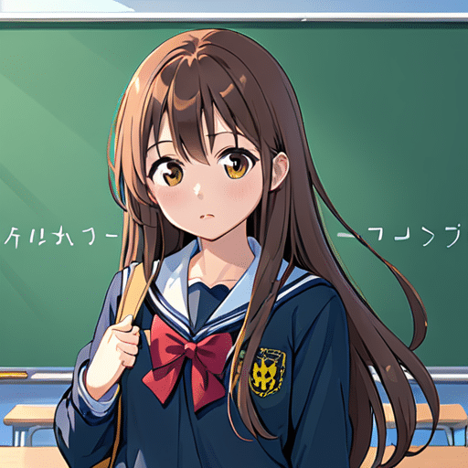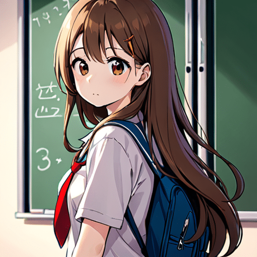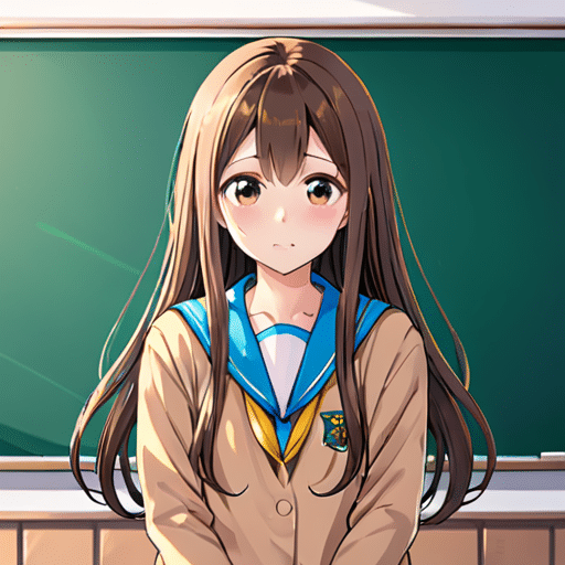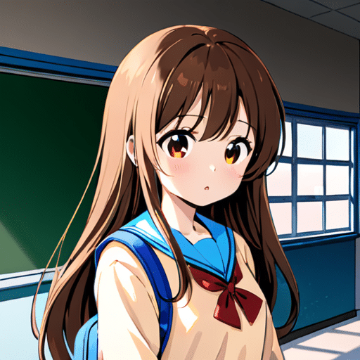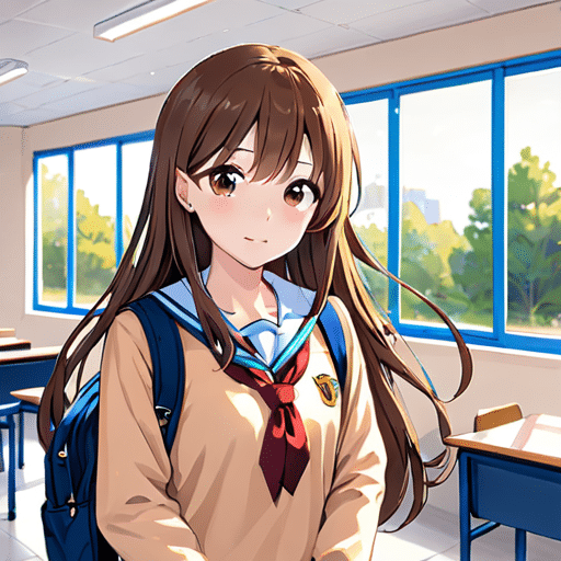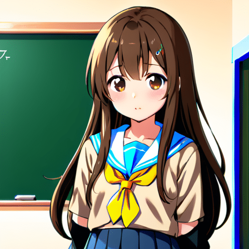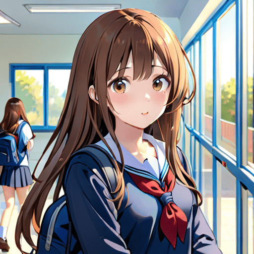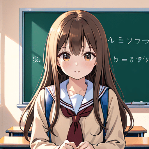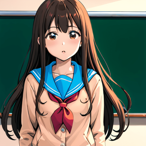 プロンプトは前回やってみて良かった「1girl, long hair, brown hair, school」を使います(masterpieceやbest quality、またネガティブプロンプトは無しにしました。)。