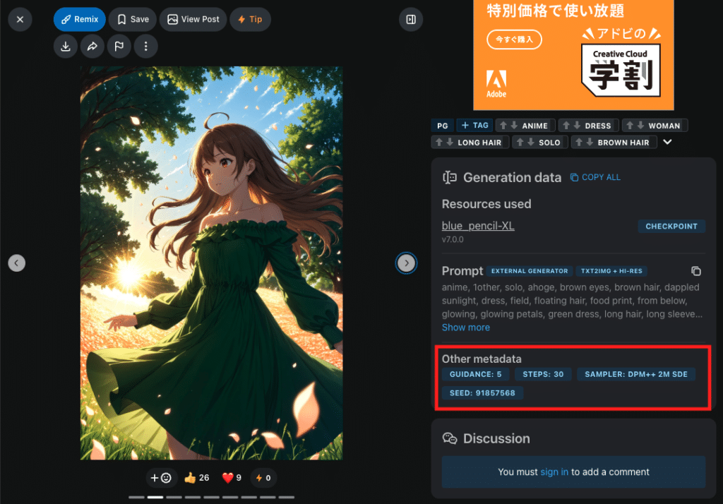 今回の結果からすると少なくともblue_pencil-XLではCFG scaleは小さめの方が良い画像を生成してくれそうということになりました。